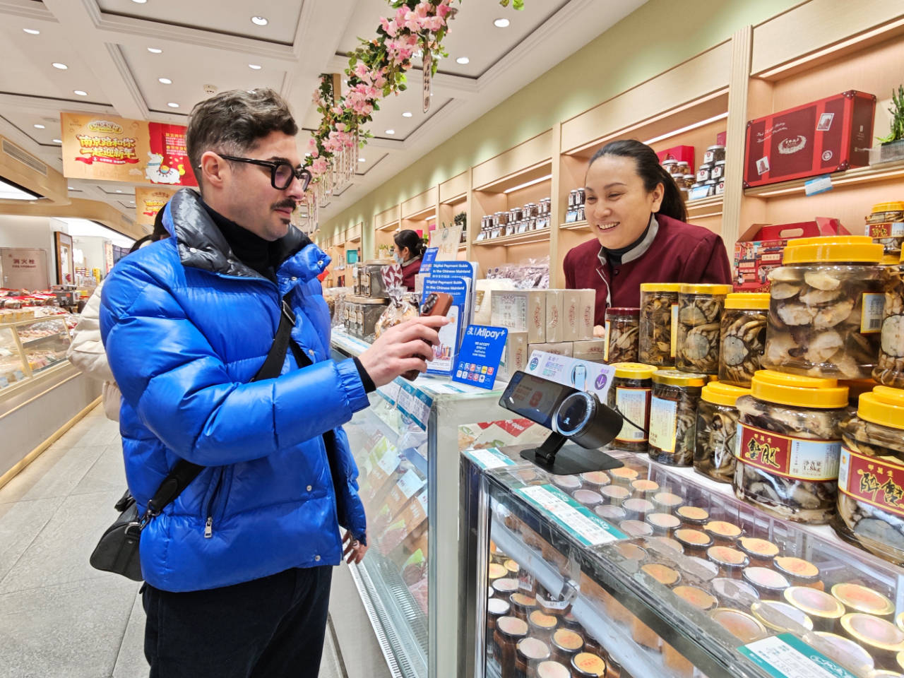 “欢迎更多全世界的朋友,来上海、逛南京路。春节,我们准备好了!”在南京路上的百年老字号三阳南货店,便利支付标识和使用说明书一目了然,这里日常每天要接待超千名外籍顾客。该店商场部经理徐晓敏乐观预测,在“入境便利+支付便利”的双重吸引下,这个春节,上海的本地老味道有望被更多全球食客享用。