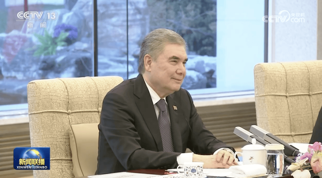 土库曼斯坦前总统、民族领袖、人民委员会主席别尔德穆哈梅多夫在北京钓鱼台国宾馆。图源:央视新闻