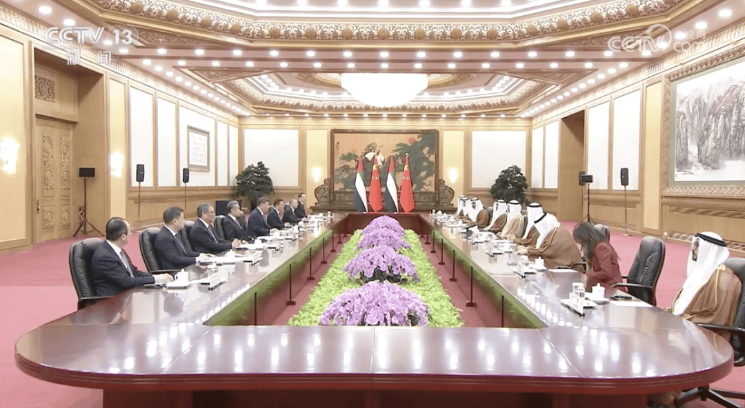 在北京人民大会堂,国家主席习会见来访的阿联酋阿布扎比王储。图源:央视新闻