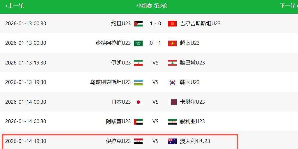 现在,所有人的目光都聚焦在了1月14日晚上19点30分。 CCTV5将会直播这场决定命运的小组赛末轮对决:中国U23男足对阵泰国U23男足。 这场比赛的结果,将直接决定D组最终的出线名额归属,其复杂性远超简单的“打平出线”。
