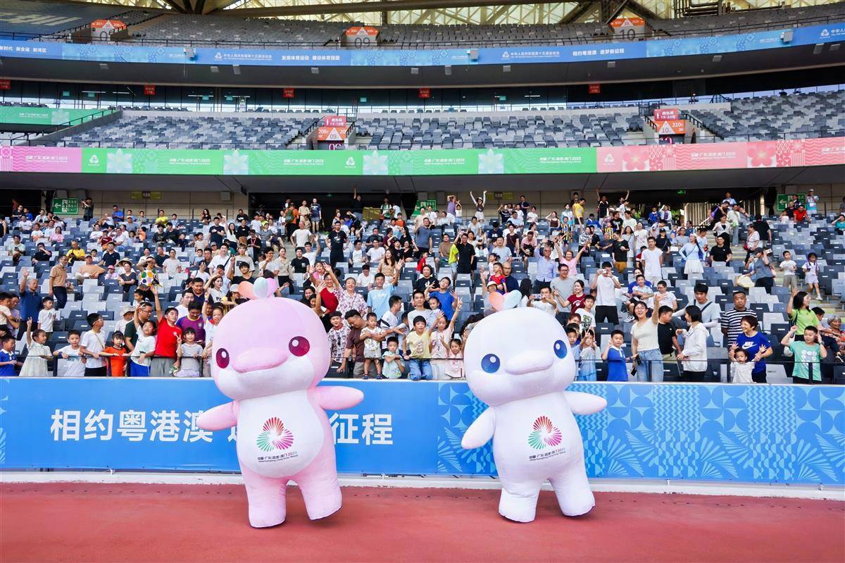 在大运中心赛场的互动环节中,除了为两队加油的简练口号,还有与吉祥物大合影、跟着会歌节奏教观众做手势的热闹场景,以及感谢志愿者等暖心环节。